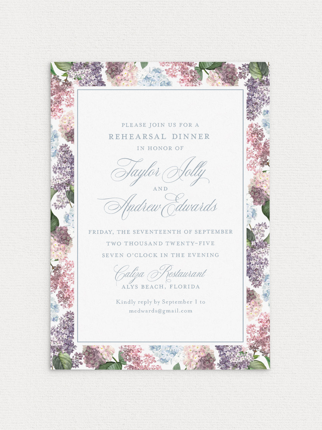 Your Rehearsal Dinner Invitation includes: